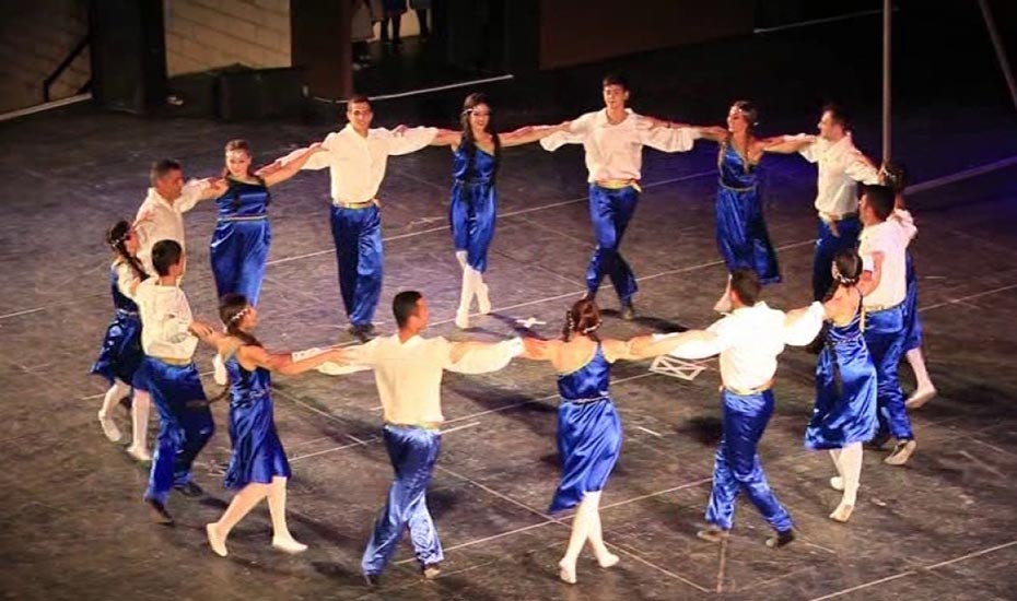 Traditional folk dance group of dancers and musicians with authentic traditional costumes (from eight up to 100 dancers).